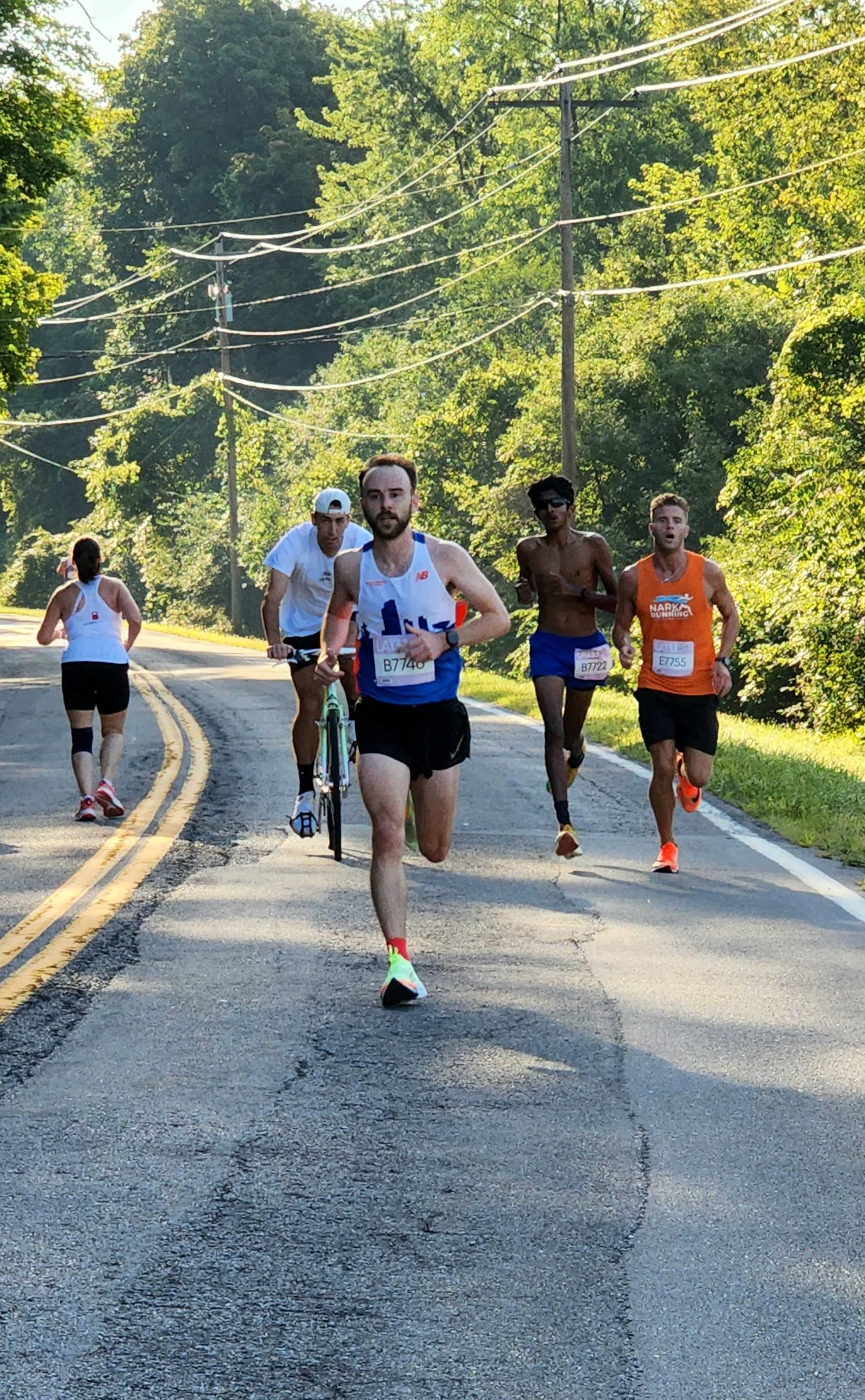 On Saturday we saw some very impressive results with almost half the field securing new 5k PR’s on this full 3.12 mile course with forty-ish feet of gain. This all with the weather being a bit warm in the mid-sixties and moderate humidity. Emily Taft led a women’s field with her second successive 5k PR at 18:06 and the top three ALL with new best’s from Erin Rasco (18:55) and Laura Skladzinski at 19:22. The men were led by Dan Lennon at 15:36, Tyler Morrissey (15:44) and Neel Chittur at 16:00. Worth noting is that these front men took a small wrong turn that cost them about five seconds and would have put Dan around 15:30 flat and a PR for Mr. Morrissey. On Friday evening before the race we realized that the town had begun a new road construction project that impacted our regular course. We made some adjustments and changed the course to an out and back on the original course. It changed the elevation a bit and required us to use a turnaround at 1.55 miles. We lost a little time finish time with these changes but the runners rose above these obstacles and tore it up.